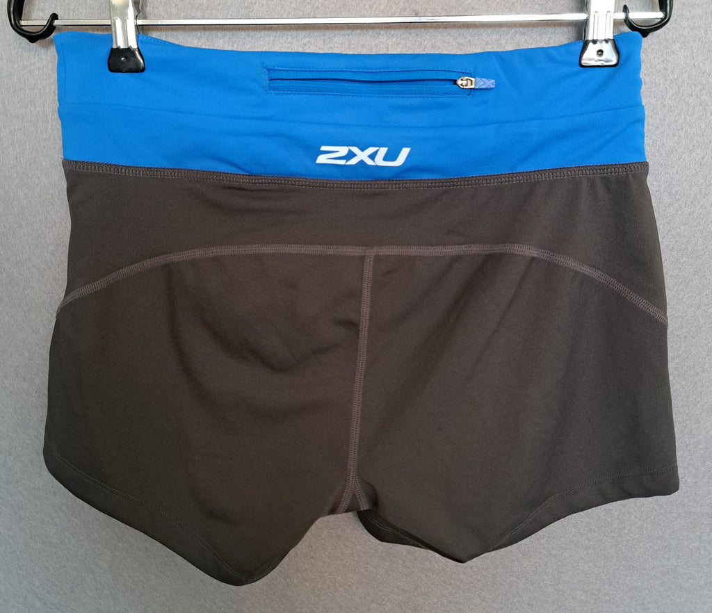 Die hintere Reißverschlusstasche bietet Platz für das Nötigste und die verkürzte Länge ermöglicht uneingeschränkte Bewegungsfreiheit.