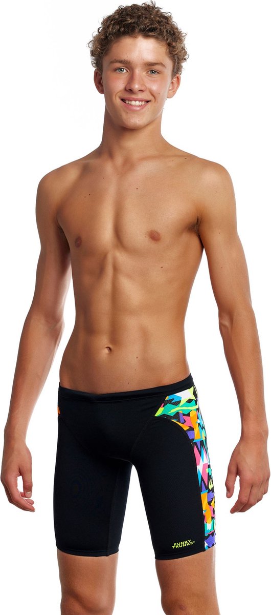 Der Trainingsjammer von Funky Trunks ist eine beliebtes Modell für Schwimmer und Triathleten. Die Nähte sind extra flach, die Beinöffnung ist bequem geschnitten und für besseren Halt gibt es im Bund einen Kordelzug. Durch das verwendete, chlorbeständige C-Infinity-Gewebe, bleibt der Jammer so strahlend wie am ersten Tag.